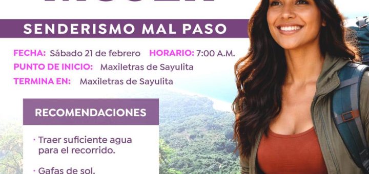 El H. XII Ayuntamiento de Bahía de Banderas, que encabeza el presidente municipal Héctor Santana, en coordinación con el Instituto Municipal de la Mujer (IMMujer), invitan a participar en la actividad “Actívate Mujer: Senderismo...