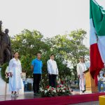 “A 218 años de tu nacimiento, te seguimos recordando, y aunque el hombre muere, jamás sus ideales”, dijo al destacar la frase más conocida que Benito Juárez dejó como legado: “Entre los individuos como entre las naciones, el respeto al derecho ajeno es la paz”.